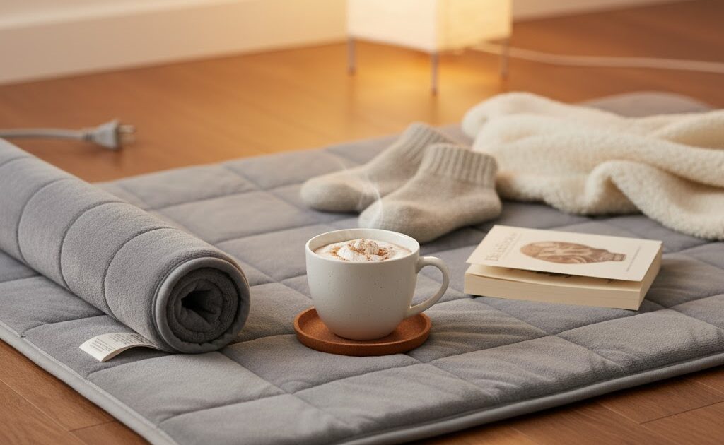 室内温度が低いときはカーペットのうえにひざ掛けなど利用すると